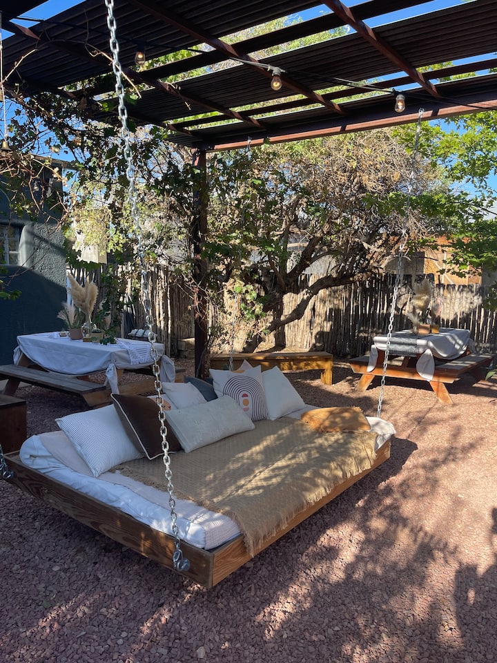 This is a Boutique Adobe Lodge featuring three unique rooms to rent. Booking this suite means you have your own living room, but may also be sharing a small lounge, kitchen and common space with others you may not know. Perfect for making new friends!