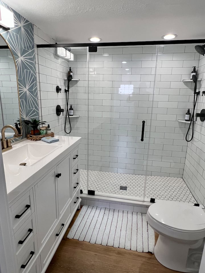 -the MAIN LEVEL BATH boasts two shower heads and two sprayers to help make showering all the kids faster or for couples who want to get ready together.
