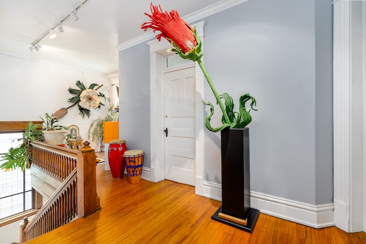 Eric and I have lived in this historic home for over 35 years, in what we consider the best neighborhood in the city, Olde Towne. We love sharing our home with friends and now airbnb guests. We enjoy walking in the woods, gardening, biking, kayaking, reading and, of course, practicing yoga.
