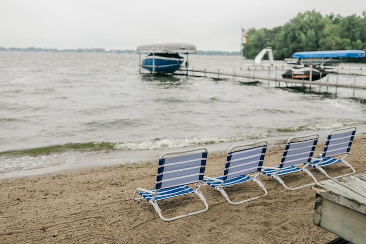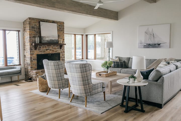 Bayside Beach Home is a family-friendly luxury retreat featuring stunning views of the lake & spacious accommodations to sleep 15. The cozy yet stylish home offers 52 feet of private sandy beach, a sprawling patio, outdoor Solo Stove, 36" Blackstone Griddle, & Traeger Smoker. Inside, enjoy a wood-burning fireplace, theater area with 75” TV, & an oversized, fully-stocked chef’s kitchen. Located in a charming small town, Bayside Beach Home will provide memories that will last a lifetime!
