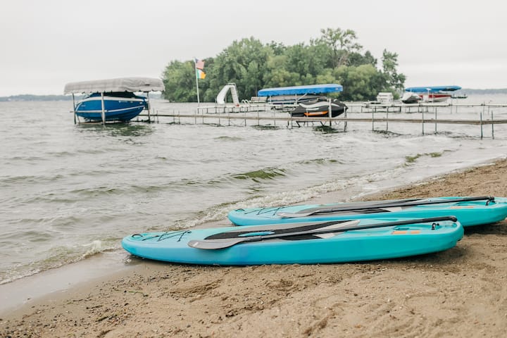 * Solo Stove smokeless fire pit, Lily swimming pad, 2 paddle boards, corn hole bean bag toss, beach toys and games, life jackets, beach chairs, beach towels, kids kayak.