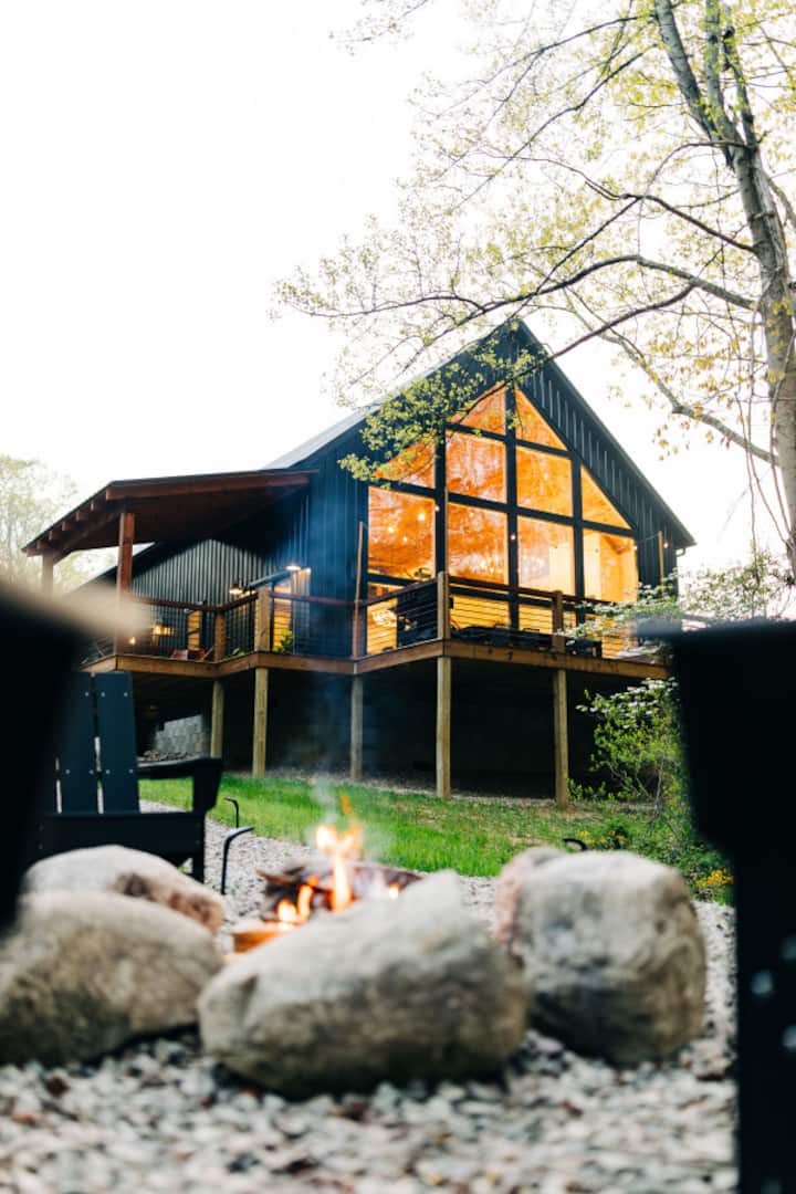 The Lodge was custom designed and built, allowing for guests to experience a one-of-a-kind getaway. Whether you have a large group or are looking for a romantic escape, this cabin is the perfect place to recharge: Walking into the cabin, you'll be greeted by the incredible and expansive wall of windows overlooking the private and vast forest on property. The Everwoods Lodge is truly a perfect home base for your Hocking Hills adventure. Check out @the.everwoods on IG for more photos, videos, and local recommendations!
