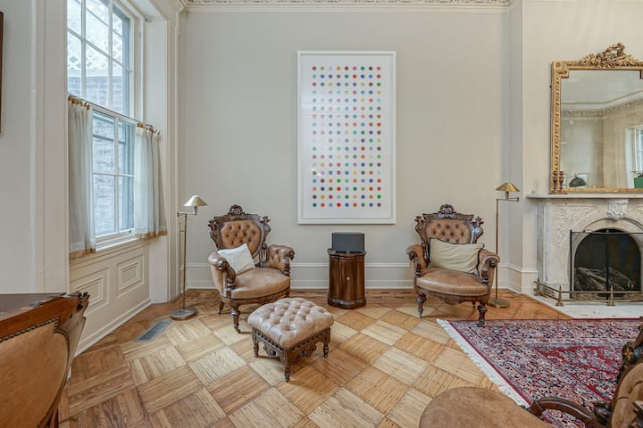 Welcome to Rittenhouse Square! We are proud to present a bit of Philadelphia History at 1822 Pine. Our 8000 sq ft home was built in the early 1800s and still has much of its original charm, including a grand Parlor that would have hosted many Philadelphia high society events. Early owners of the property included John Rozet, son of Jacob Rozet who helped launch America's first manned balloon flight in 1793, and Mary Anne Lanning, Daughter of renowned Adjunct General John Lanning.