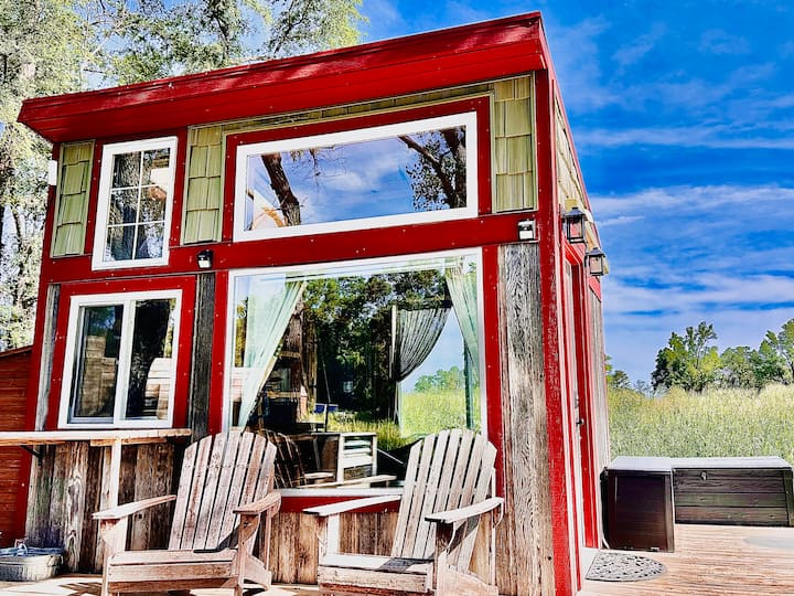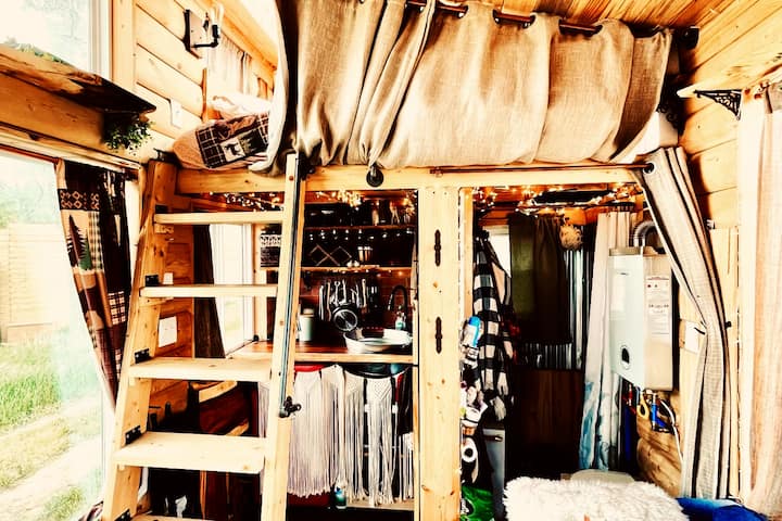 This unique (teeny!) tiny cabin was custom designed for extreme minimalist living! The atmosphere gives a cozy, woodland, and mystical feel; a large outdoor living space makes this a unique combination of outdoor/indoor living. Come to reflect, relax, enjoy the views and sounds of nature, and discover the unmatched delight of cozying up in a teeny tiny house in a vast outdoor space!