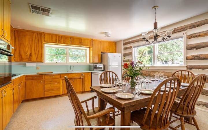Soak up the history of Kernville Ranch in the all natural cedar hot tub after a day on the river, watch the horses frolic in front of pink and purple mountains. Plunge into or practice your casting in our private river (Runs April through December). Originally built in the 1890s. Nestled in over 14 acres of water meadow. There is an attached but separate wing that is another listing. Two bedrooms upstairs, a large living room, loo & kitchen downstairs. no checkout chores.