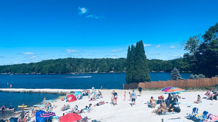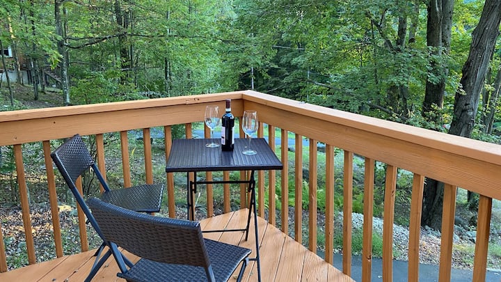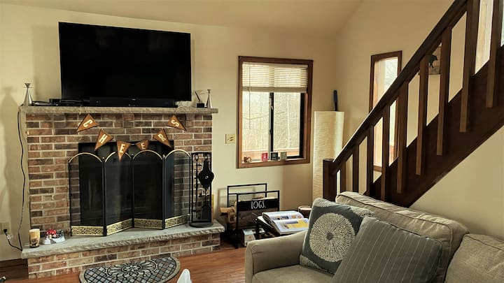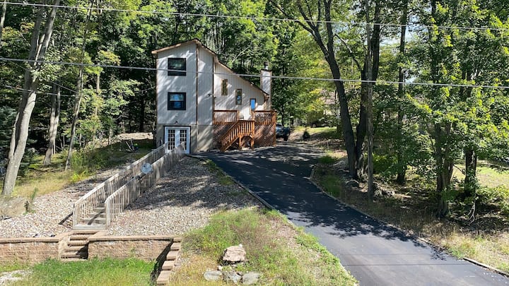 Tall Hill Lake House is a cozy chalet, nestled in the Poconos Lakes Region, minutes from Lake Wallenpaupack and the quaint towns of Hawley and Honesdale. The chalet is located in a gated community, well balanced between woods isolation and plenty of amenities for all seasons. The Lake and North Beach are a 5 minute walk, and you have access to heated swimming pools, golf course, tennis, basketball, pickleball, gym, skiing, tubing and more!