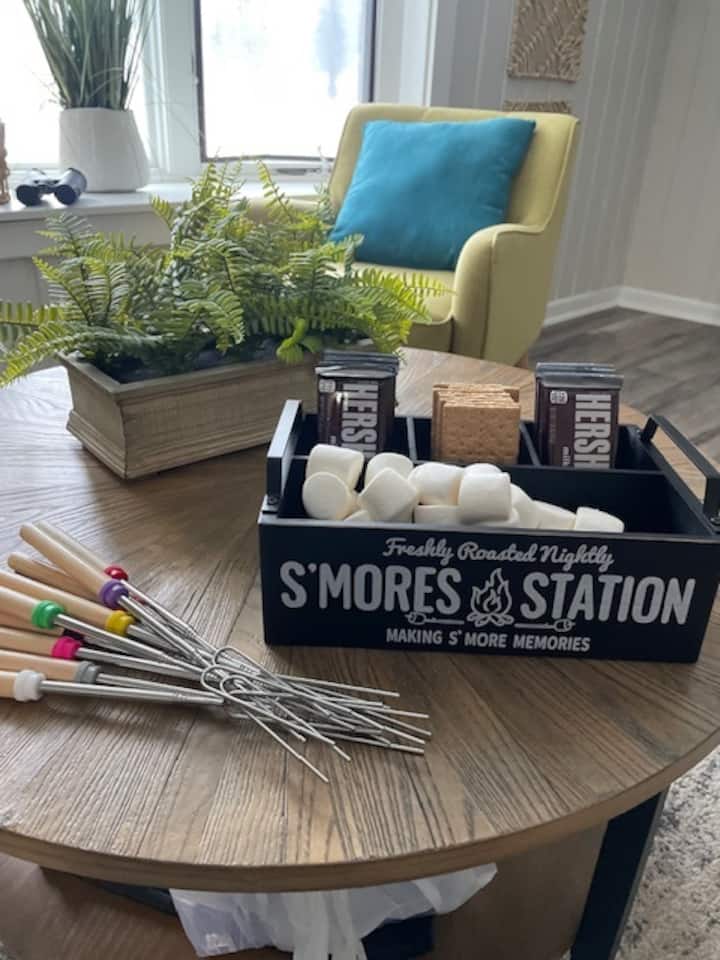 You've found it – the perfect fun spot for your family beach vacation! Just a road trip away and less than half a mile from the beautiful beaches. Guests rave about the supplied beach accessories! You'll love the quiet, peaceful neighborhood close to the Michigan City's Washington Park beach, downtown, zoo, restaurants, outlet-mall shopping, and more. Grill outside; gather the family around the firepit , roast marshmallows, Smores Board provided. Play games like cornhole and board games.