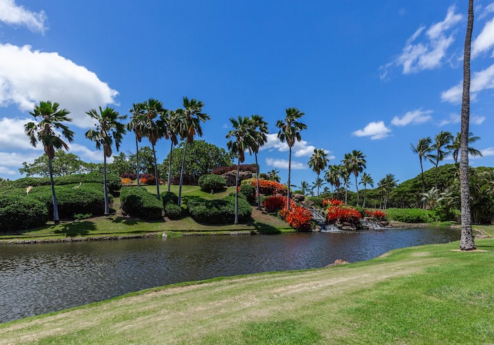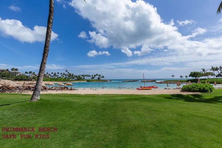 The Ko Olina Lagoons, renowned for their pristine waters and gentle waves, are just a short stroll away. Spend quality time swimming, snorkeling, or simply relaxing on the soft sands.