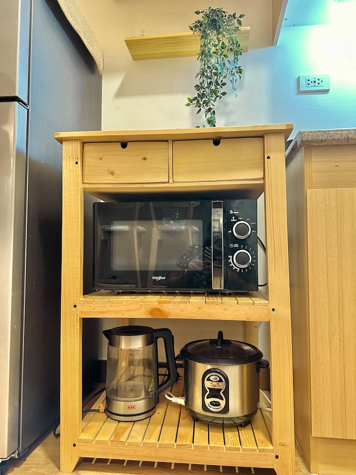 - Basic Cookware and Kitchen Utensils (light cooking allowed-we strongly discourage cooking or storing foods with strong smell like dried fish, bagoong, durian and fried fish)