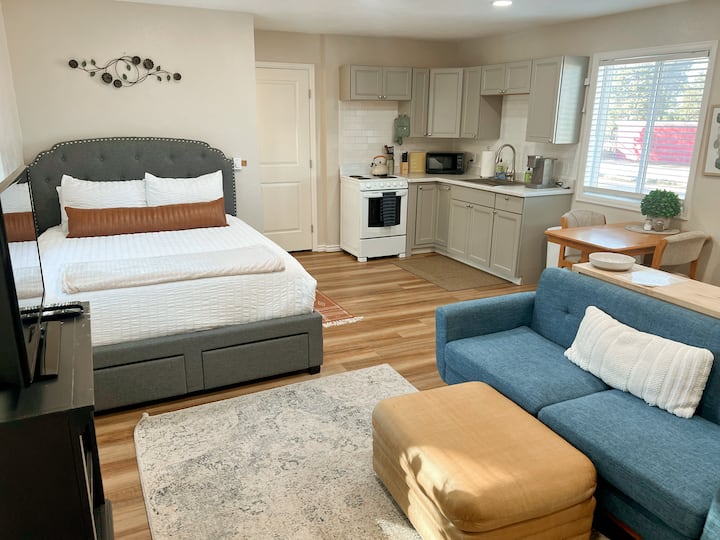 Charming Cabin Studio• steps to Cafe! Fenced patio