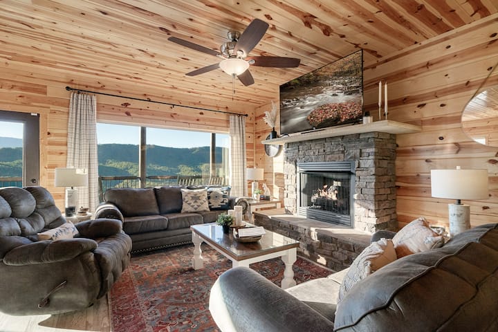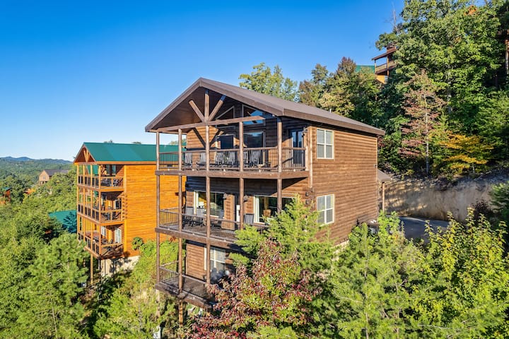 Experience amazing views from three covered decks. Game rooms! Theater room! Hot tub! When you're ready for a day of adventure, the Pigeon Forge and Dollywood are a short 10 minute drive. Book now!
