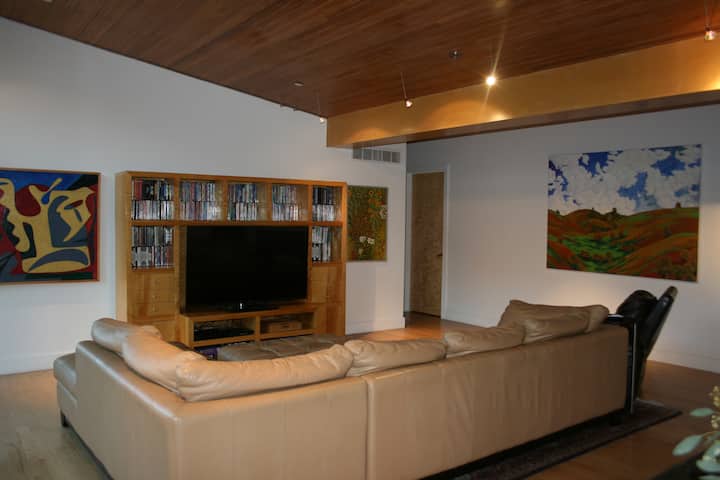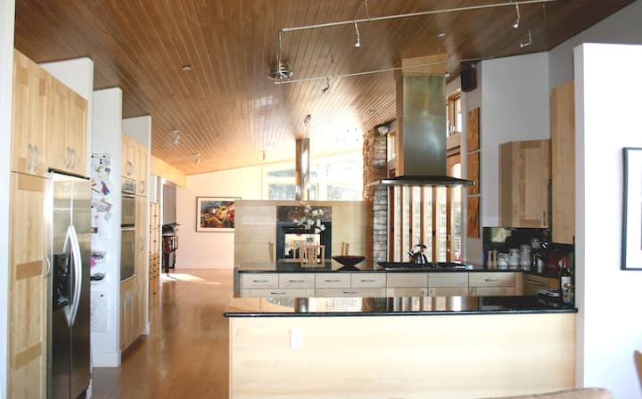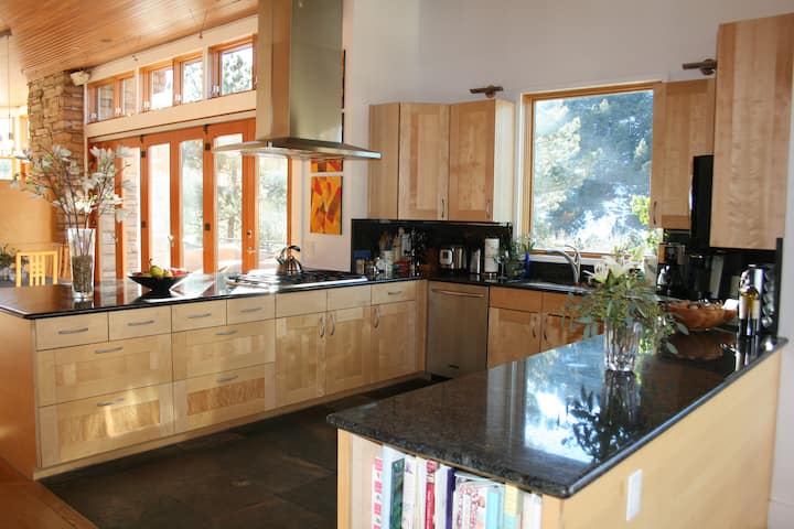 We have lived in Boulder since 2004 and have loved every minute of our time here. We moved from Los Angeles, bought 20 acres in the foothills just outside the town, hired an architect and built our modern dream house. We are situated in a valley with amazing views and surrounded by trees, rock outcroppings and small wildlife (including a flock of turkeys). Our home is a peaceful and serene retreat.