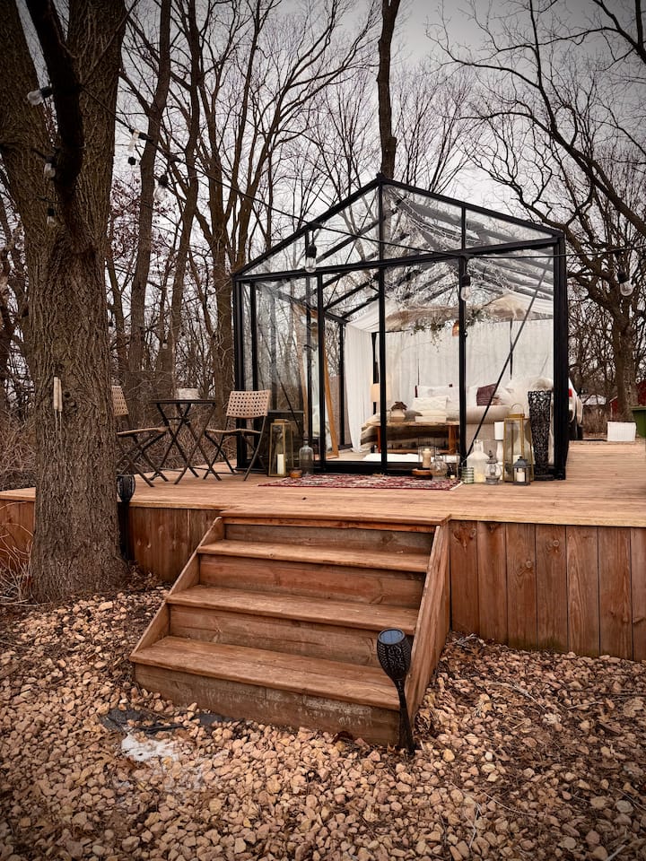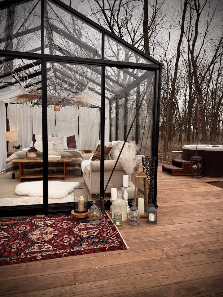 Star Gazing Glass House 4 Season with Hot Tub
