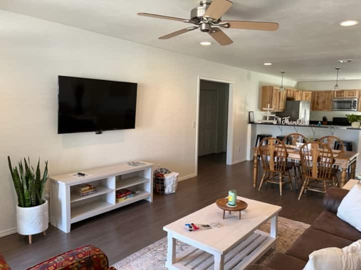The alfresco dining, bbq area, and outdoor seating are great for summer trips.