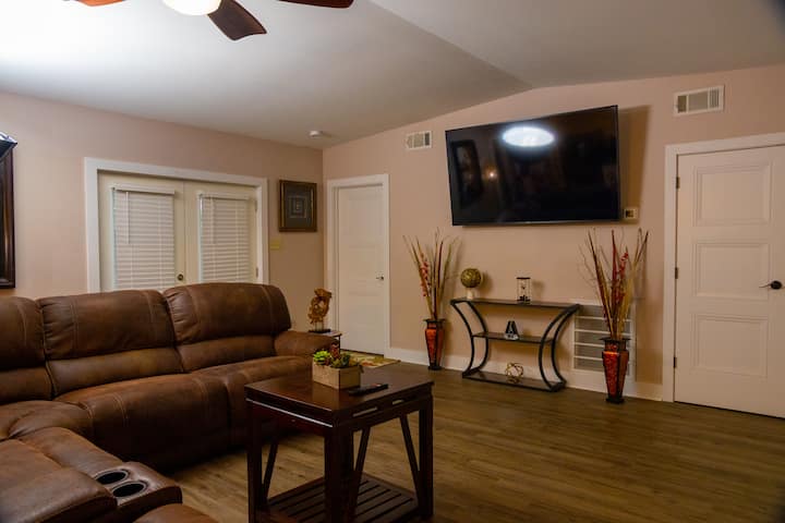 The alfresco dining, bbq area, and outdoor seating are great for summer trips.