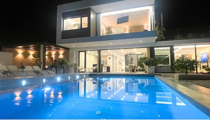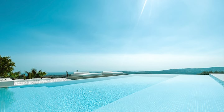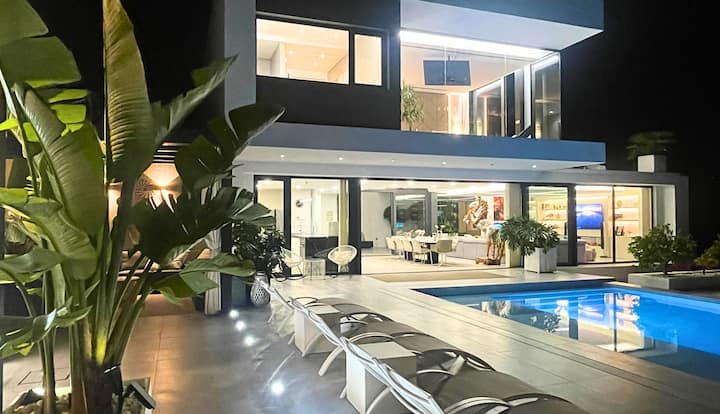 Modern, luxury villa in a privileged enclave with complete privacy and surrounded by nature with incredible panoramic views to the sea and the mountains. Ideal to spend an unforgettable with family or friends or to celebrate events.