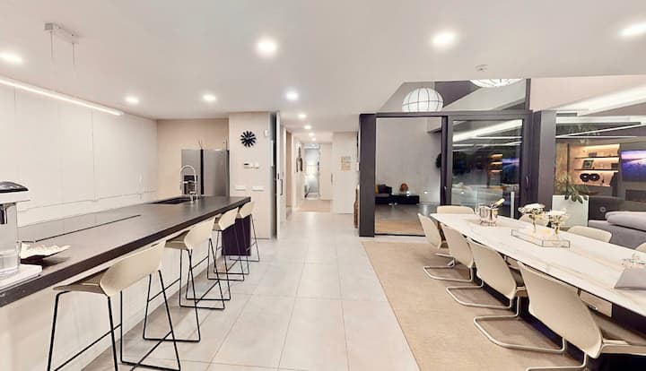 - DINING ROOM with designer table and ergonomic chairs for 10-12 people.