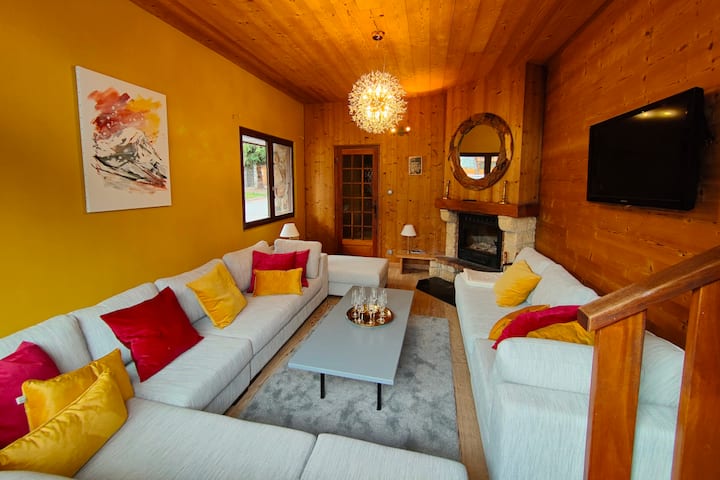 In addition to the sleeping areas, the chalet has spacious living spaces to enjoy the mountain with the family: a large equipped kitchen (dishwasher among other equipment), a living room with an insert fireplace and large sofas, a dining room with 15 seats (and raclette machines...), a 25m² cinema room.