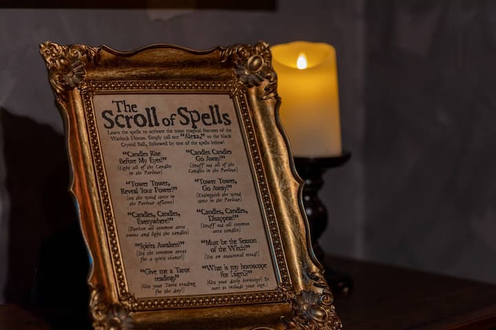 Experience the magic of the Warlock House - wave your wand, ride your broom, speak your spells, and watch Warlock House come alive. Special smart lighting creates unique moods - selectable by you! In every room of the Warlock House, the lighting can be set to fit your own magical mood. Imagine spooky ghostly blues, autumnal shades, or herbal hues - all available via incantations or a magical touch.