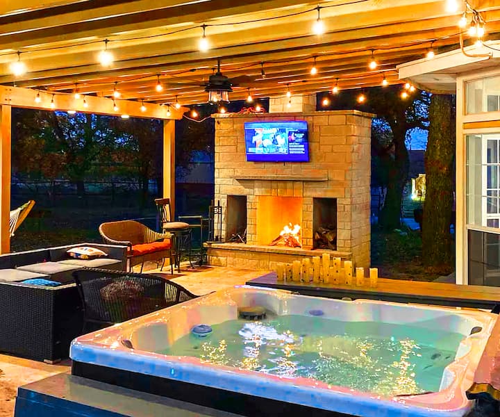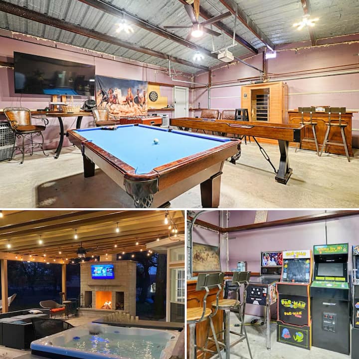 Heated Swim Spa Hot tub Sauna Game Room Pickleball