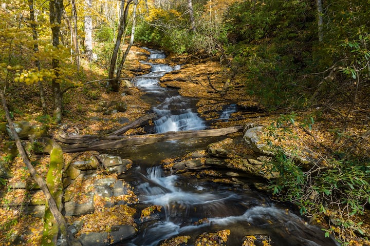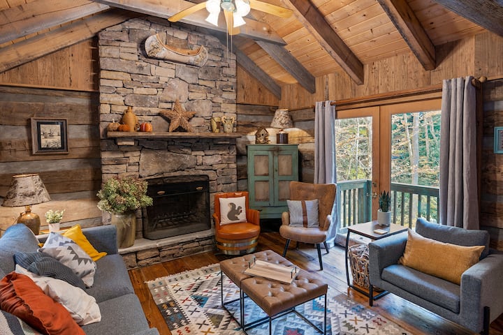 Pet-Friendly, Cozy Log Cabin with Waterfall