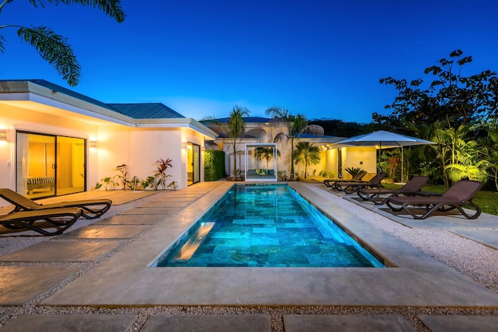 Enjoy tranquility in a new 5-bedroom luxury home with private pool, including daily housekeeping and breakfast *! Casa Duna Grande, accommodating up to 11 guests** is just a 3-minute drive from the beach and the town. Situated within Senderos, Tamarindo's most exclusive and secure gated community, it offers 24/7 security. Come and live an unforgettable experience to elevate your lifestyle in a home that reflects refined taste and attention to detail. Your dream retreat awaits!