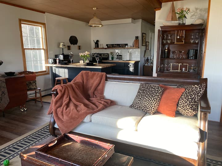 Step into our bright and airy lakeview cottage, designed for comfort, relaxation, and family fun! The open-concept living room and kitchen are bathed in natural sunlight and offer breathtaking lake views. Enjoy meals together at the spacious dining table, and if work calls, a small desk and chair provide a quiet workspace.