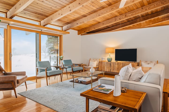 Midcentury home, private beach, large deck