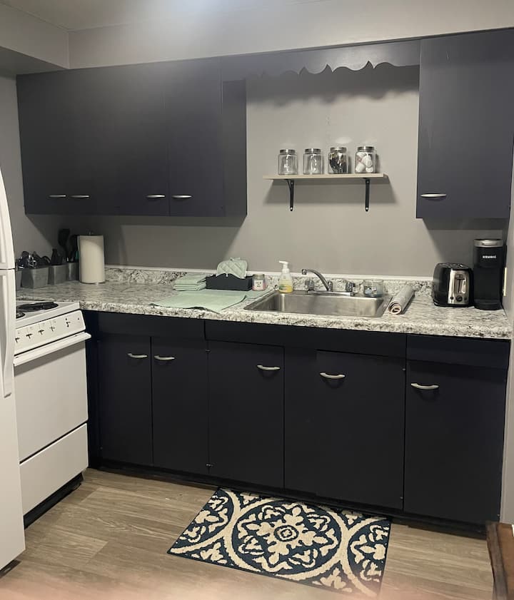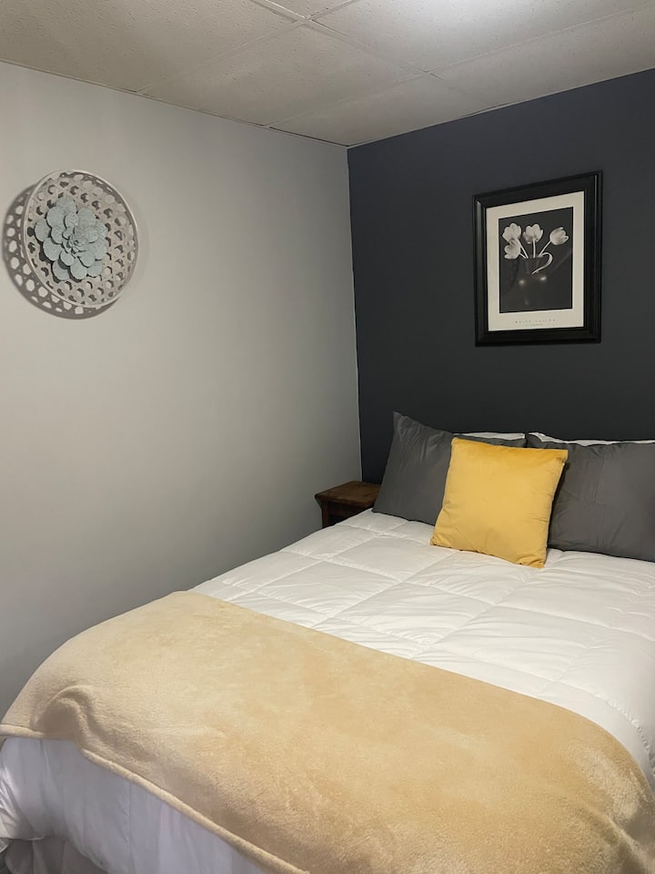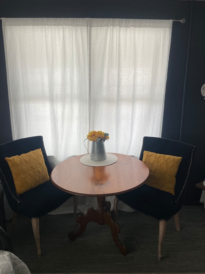The Blue Jay Room is a cozy one bedroom apartment.