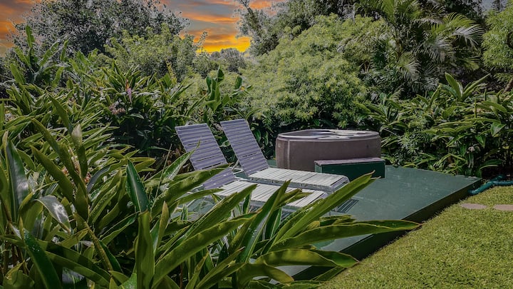 Your sweet garden cottage is very private, with your own lanais, barbecue and private hot tub. Only the pool is shared with a couple other guests.