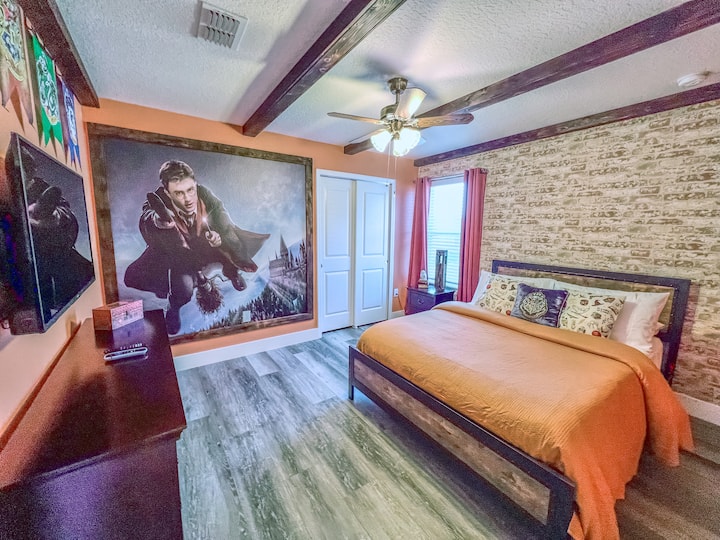Harry Potter Themed Bedroom- Queen bed and smart TV.