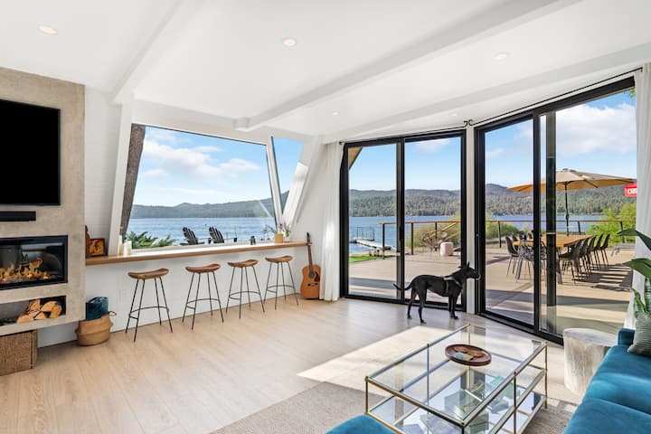 Anchored on the tranquil shores of Big Bear Lake, California, Loro’s Lookout is your private, lakefront retreat—a masterful blend of architectural vision and natural splendor drawing inspiration from the iconoclastic styles of Frank Loyd Wright and Harry Gesner.