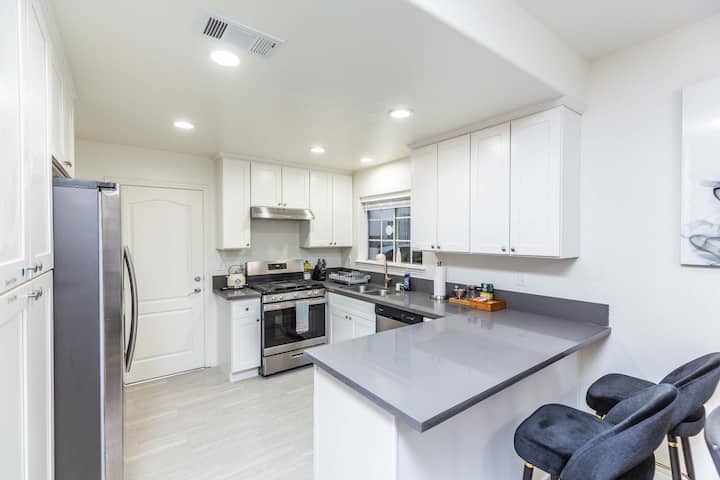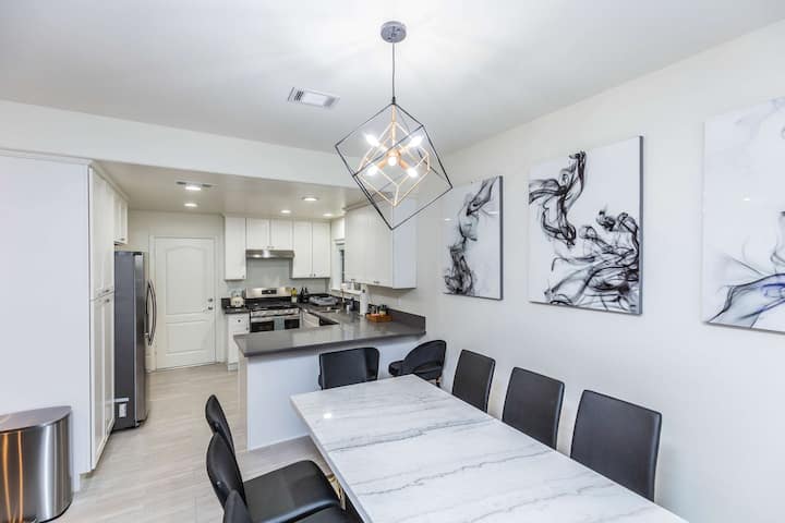 Escape to a serene retreat at our newly remodeled 5-bedroom, 4-bathroom townhome in the heart of Pasadena. Perfect for both relaxation and business trips, this spacious 2-story home offers modern amenities and comfortable living spaces.