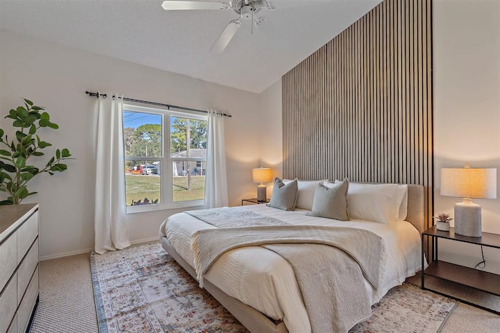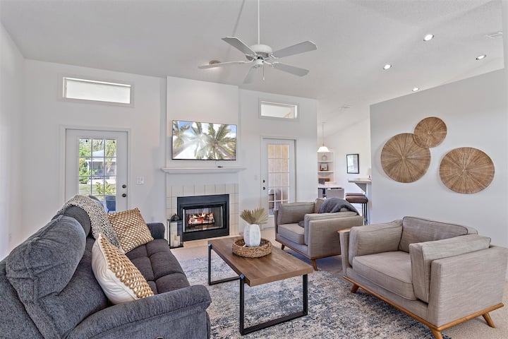 This gorgeous home is nestled into one of the serene neighborhoods conveniently located close to the beaches, downtown, Arlington Park, and locals favorite restaurants! With the spacious living and dining areas with high ceilings and natural light flooding in, this space is both inviting and cozy for the family! The large and beautifully decorated bedrooms are perfect for a good nights sleep after a day at the beach. One of our favorite features of this home is the indoor electric fireplace next to the 55" Smart TV- making this space ideal for evenings spent with the family! This home has a way of enchanting you and ensuring that you never want to leave!
