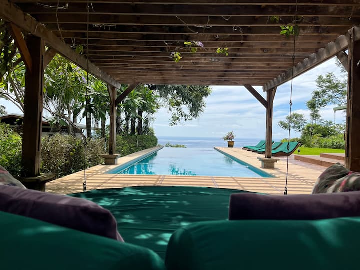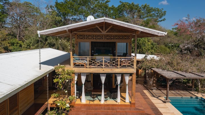 Only 10 minutes away from Montezuma beach town and very close to the famous waterfalls you will find Loma Sibo. A private and breathtaking 180 ocean view villa with an infinity pool surrounded by tropical forests and beautiful gardens, that can accommodate from 6 to 11 people. It is ideal for smaller families or larger groups as a wooden spacious terrace connects all rooms with the social and kitchen area and brings the jungle and ocean magic into your life. Immerse into the untamed beauty.