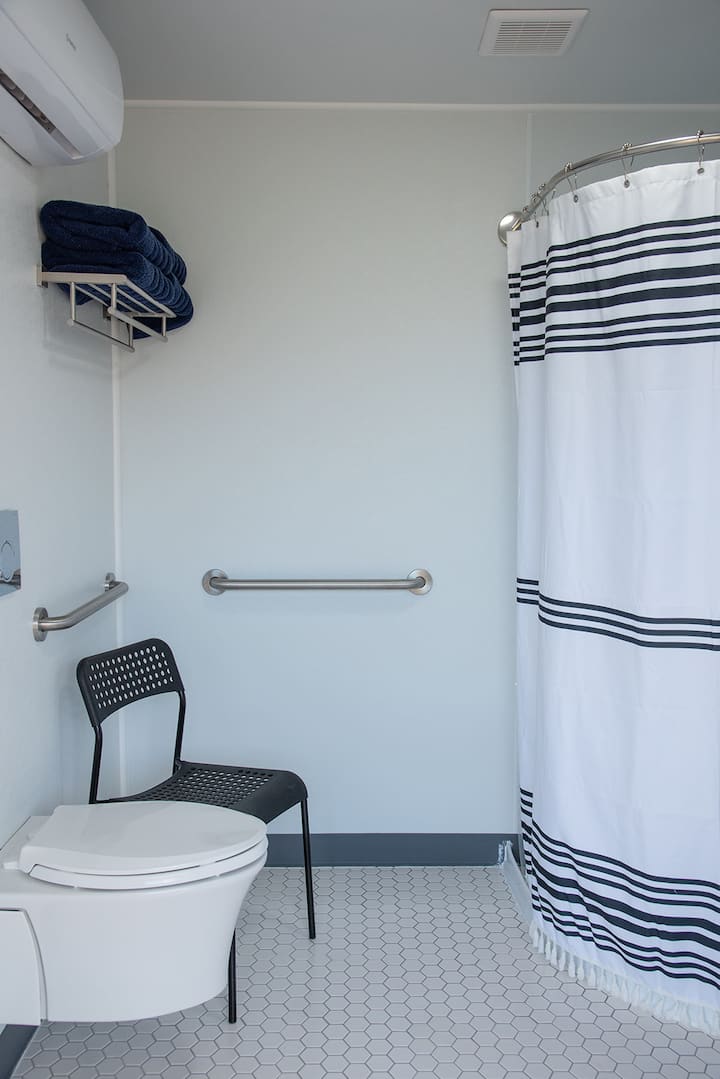On-site bathrooms with hot showers, shampoo & conditioner.