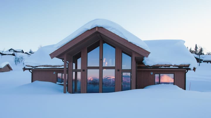 The cabin has 5 bedrooms and room for up to 15 people, making it perfect for large families or friends who want to spend quality time together. The 2 full bathrooms and the modern kitchen make your stay even more pleasant, and with the insane views and accompanying outdoor furniture, you can enjoy beautiful sunsets and delicious meals outdoors. The cottage has a spacious living room, and an extra TV room on the second floor, with an extra TV, if you want to relax with a movie or let the young people enjoy Playstation, while the adults enjoy a glass of wine in front of the fireplace, a good book or plan the next day's mountain trip.