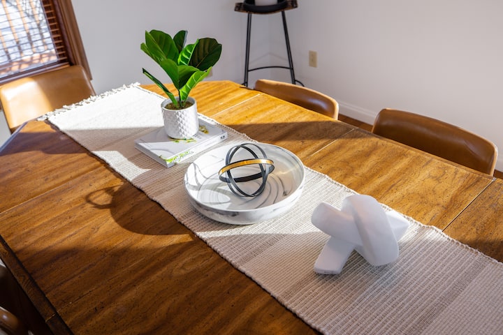Dishwasher, microwave, gas stove, refrigerator without ice machine. Stocked with pots, pans, utensils, cleaning supplies, dishware (including child-safe dishes and utensils); toaster and blender. The dining area has seating for 6 and offer a high chair.