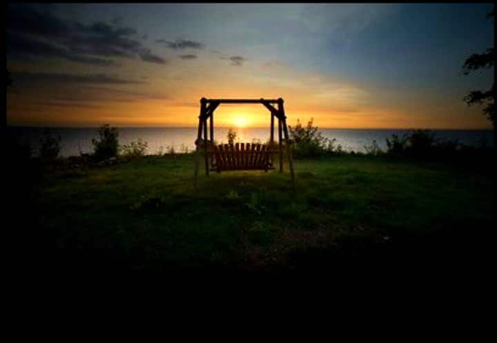 Wake up to sunrise over Lake Superior and later sauna as the moon rises over the lake