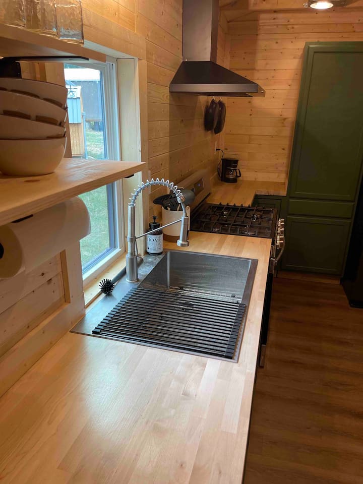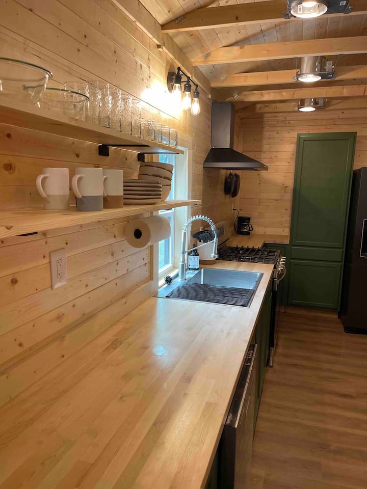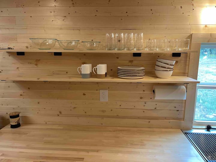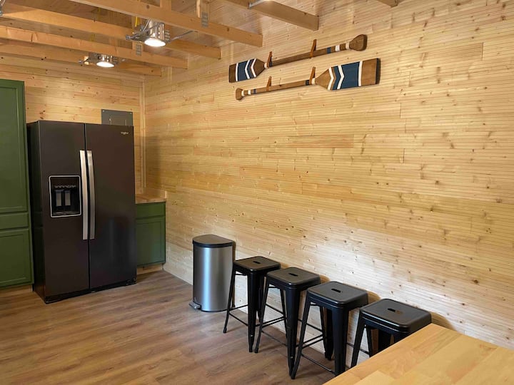 The firepit, alfresco dining, and outdoor seating are great for summer trips.