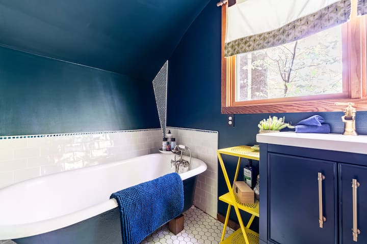 The smaller bungalow,"Satellite", is a 350sqft one of a kind tiny house. It has everything you need for a couple nights to an extended stay in the mountains...Especially if you plan on being out and about exploring the state and national forests right down the road! Come home to your cozy little bungalow for a soak in the hot tub or cast iron bath tub, a fire outback, a rest in a hammock or pop in a movie and get ready for your next day of fun mountain adventure!