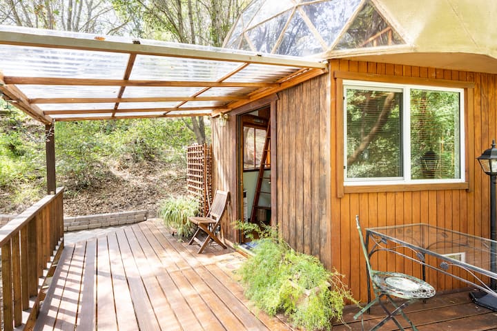 As we are no longer allowed by Santa Cruz county to rent the Mushroom Dome Cabin by it's self, we are now listing the LAND of Paradise Suite, a room in our unique home. (LAND: Love And Nature Divine) Make a reservation for the Suite and you will have unlimited access to the Mushroom Dome Cabin, aka Retreat.