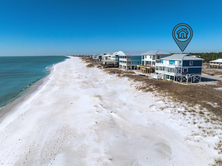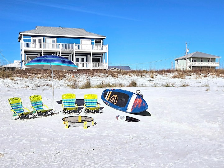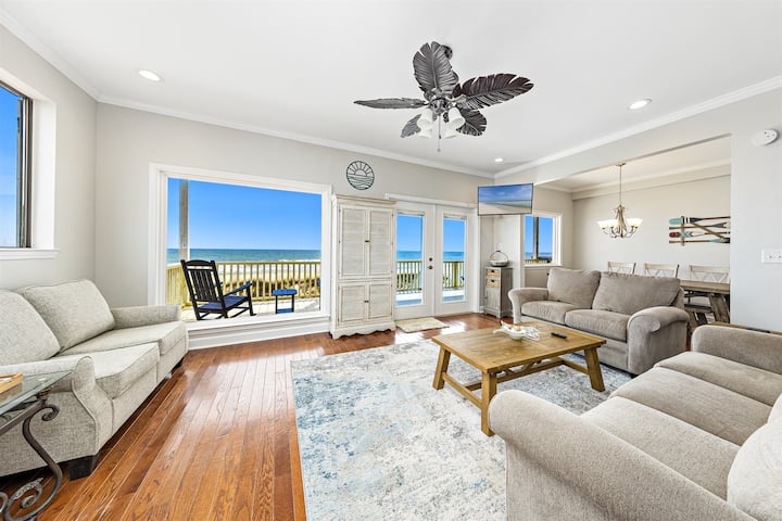 Your search for the perfect Gulf Shores beach house is over! "Take Me A Wave" is a BEACHFRONT property with stunning views! Ideal for your group of up to 18 guests w/ 5 ensuite bedrooms, 4 bedrooms with ocean views & direct deck access & tons of extra amenities!