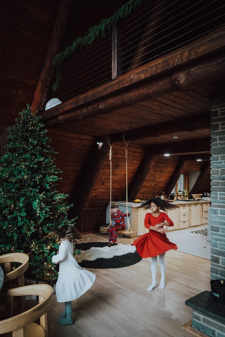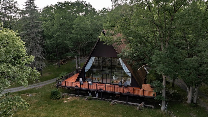 Designer A-Frame Cabin • Cedar Hot Tub