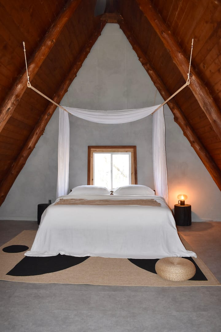 With the help of my amazing family and friends, I was able to turn this A-frame cabin into a wonder to stay in. A perfect place filled with natural textures and asymmetrical objects, creating an elegant design great for creating memories and embracing the imperfection of things around us.