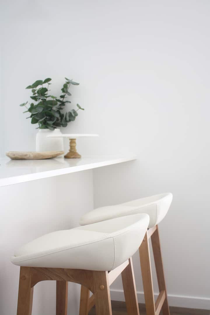 Indulge in optimum sleep in the super comfortable king size bed, with bamboo cotton sheets and pure linen pillow cases and doona cover. Power points are conveniently located on each side of the bed, with USB ports for charging your phone (please bring your own charging cords). Full size mirror, with large walk in wardrobe and 2 x luggage racks. An iron, ironing board and Dyson stick vacuum are also located in the walk in wardrobe.