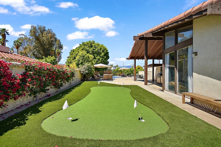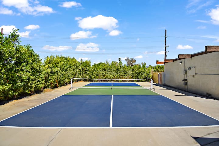 - Guests will have exclusive use of the back yard, which has a large pool with spa, pickleball court with paddles and balls, putting green, mini ping pong table, gas bbq, a dining table and chairs, 4 tanning lounge chairs and large couch seating area.