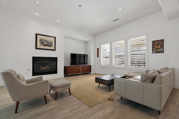 55” Smart TV in living room with apps guests can log in to their own accounts (Netflix, Youtube, Prime, etc.). Living room also features a gas operated fireplace. Master bedroom features a 65” Smart TV with apps guests can log in to their own accounts (Netflix, Youtube, Prime, etc.). There is a washer & dryer for guest use and the highest speed available wi-fi throughout the home. Two car garage use with remotes are available for guests along with a proper voltage electric car charger (guest must bring their own cable).