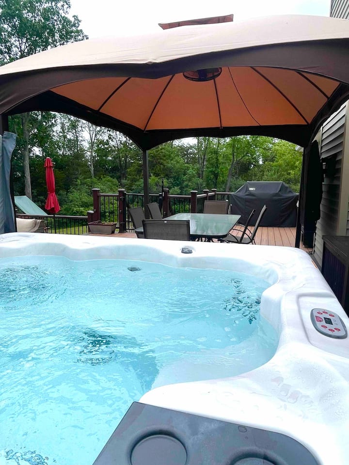 Private hot tub open year-round for relaxation