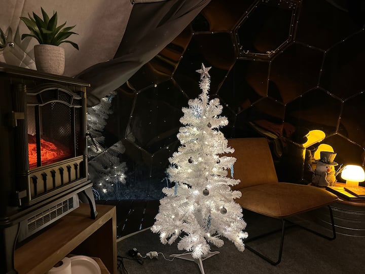 As night falls, the dome takes on a magical quality. The sun casts a warm, golden glow over the landscape, creating a sense of calm and tranquility. The starry sky is visible through the dome's clear panels, and the peaceful sounds of nature continue to lull you into a deep sleep.